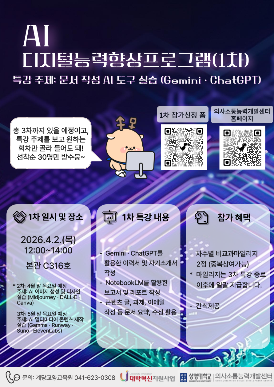 [의사소통능력개발센터(천안)] 2026-1 AI 디지털능력향상프로그램(1차) 참여자 모집